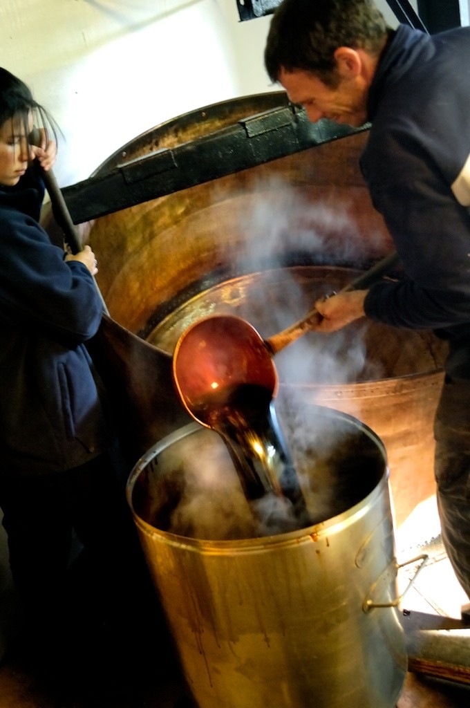 traditional way — patiently, quietly, and with the same gestures passed down through generations. For six weeks every autumn, the fire burns day and night as apples and pears are cooked down to